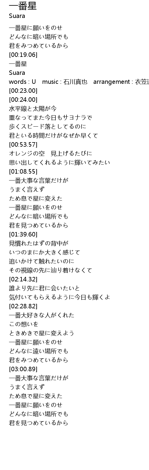 | [00:20.00] | 一番星 |