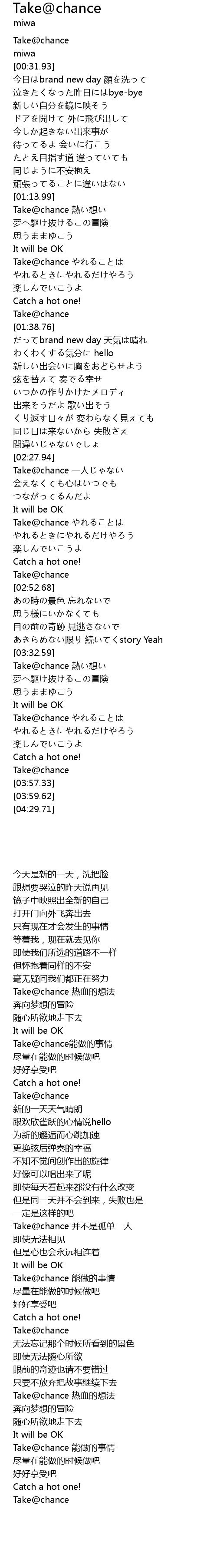 | [03:17.34] | 目の前の奇跡 見逃さないで |