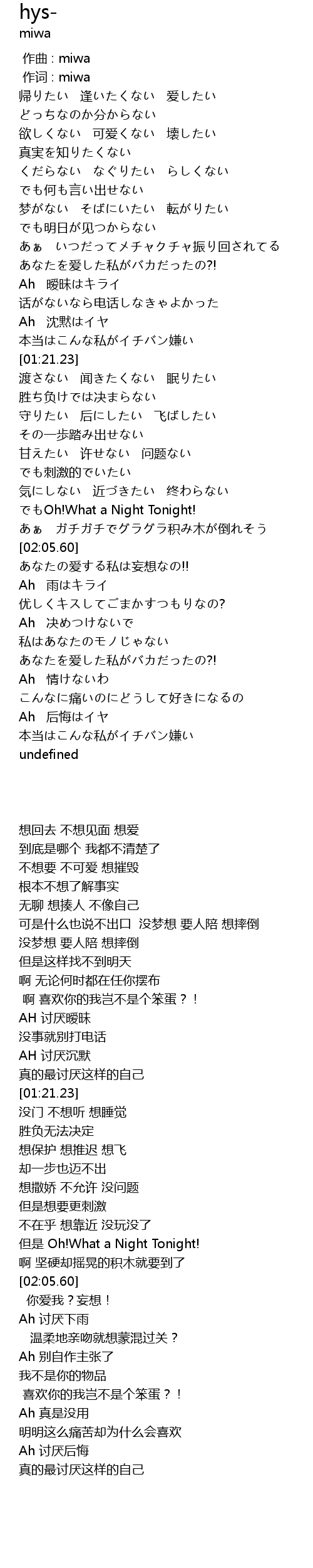 | [01:46.21] | でもOh!What a Night Tonight! |
