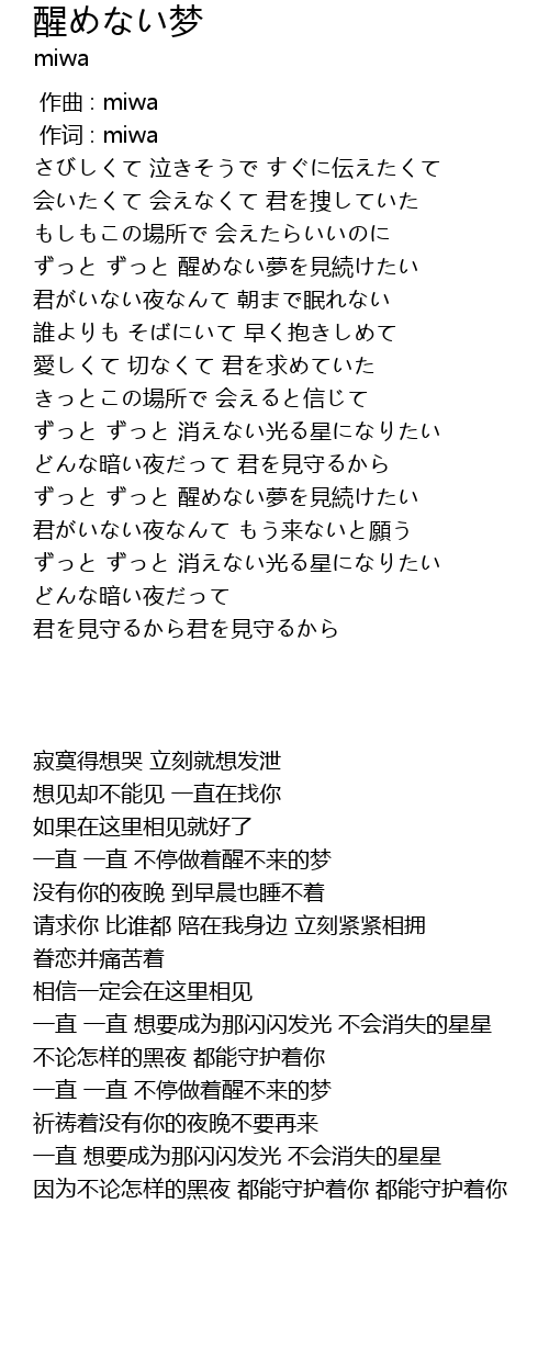 | [02:23.910] | ずっと ずっと 醒めない夢を見続けたい |