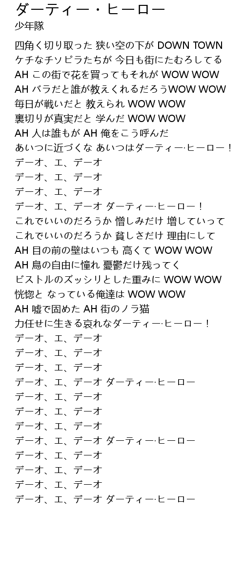 | [04:03.44] | デーオ、エ、デーオ ダーティー·ヒーロー |