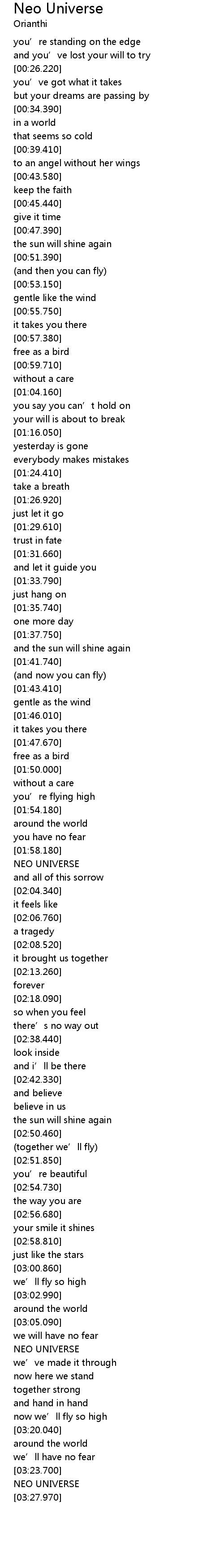 | [01:58.460] | NEO UNIVERSE |