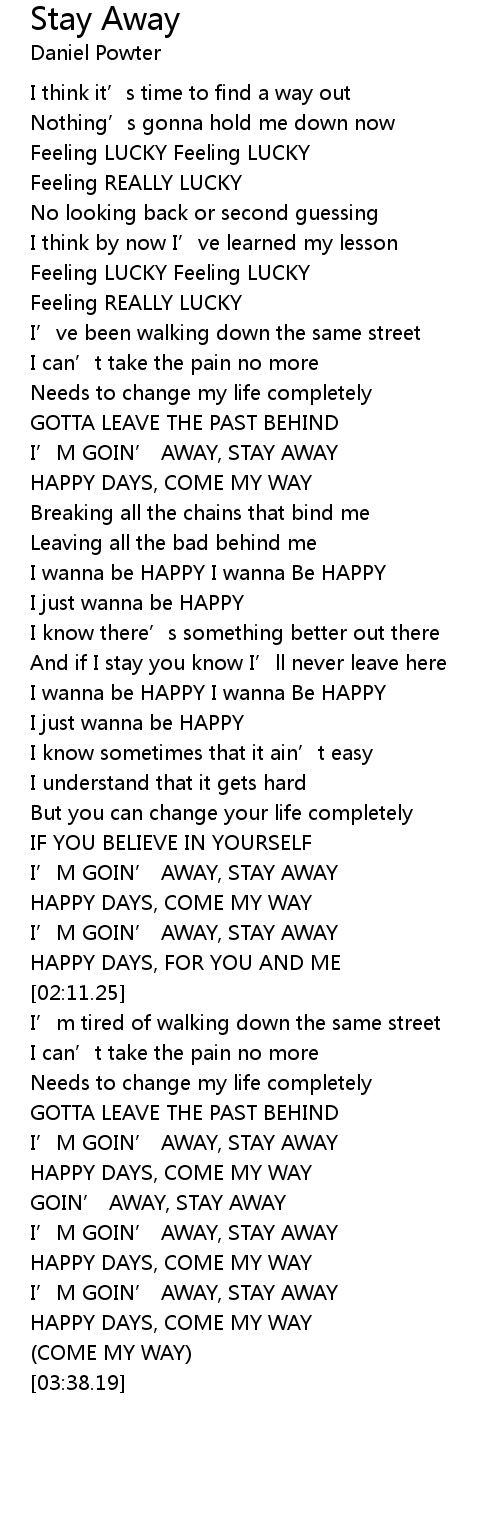 | [02:48.72] | I' M GOIN' AWAY, STAY AWAY |