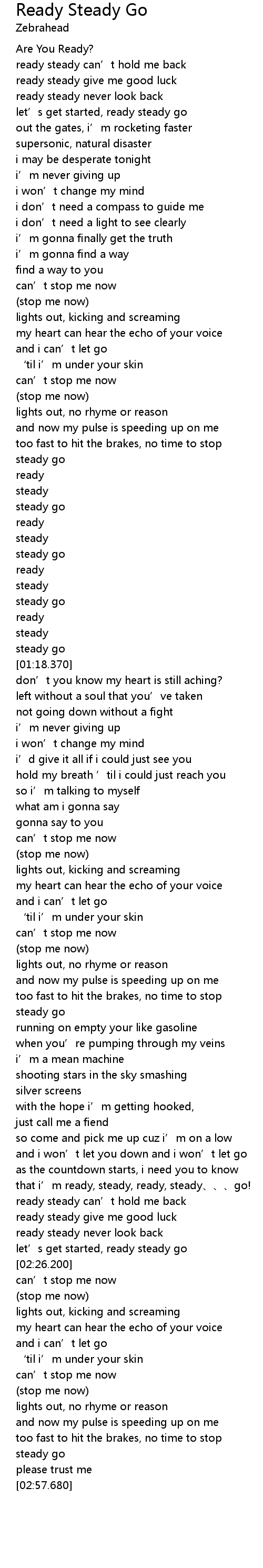 | [02:13.540] | that i' m ready, steady, ready, steady go! |