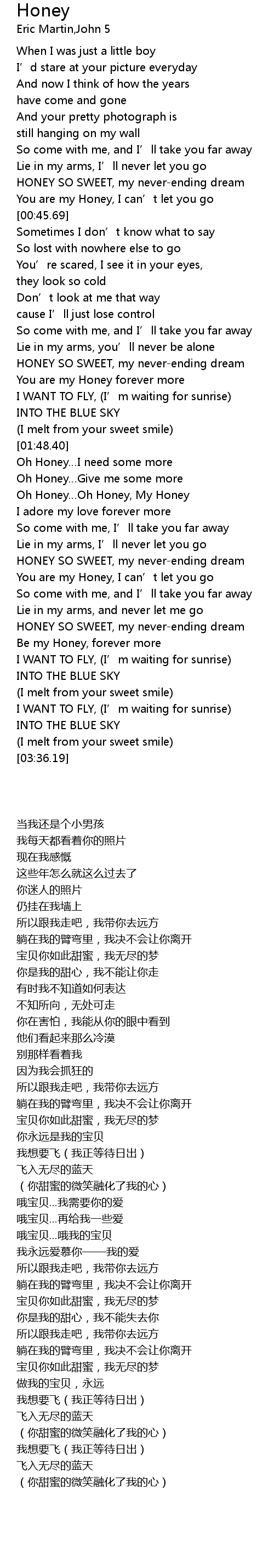 | [02:46.84] | You are my Honey, I can’t let you go |