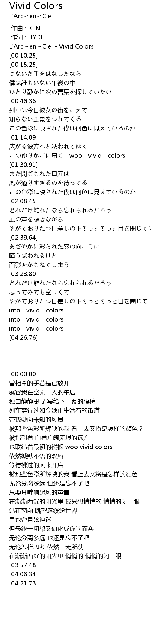 | [00:00.00] | L' Arc en Ciel Vivid Colors |