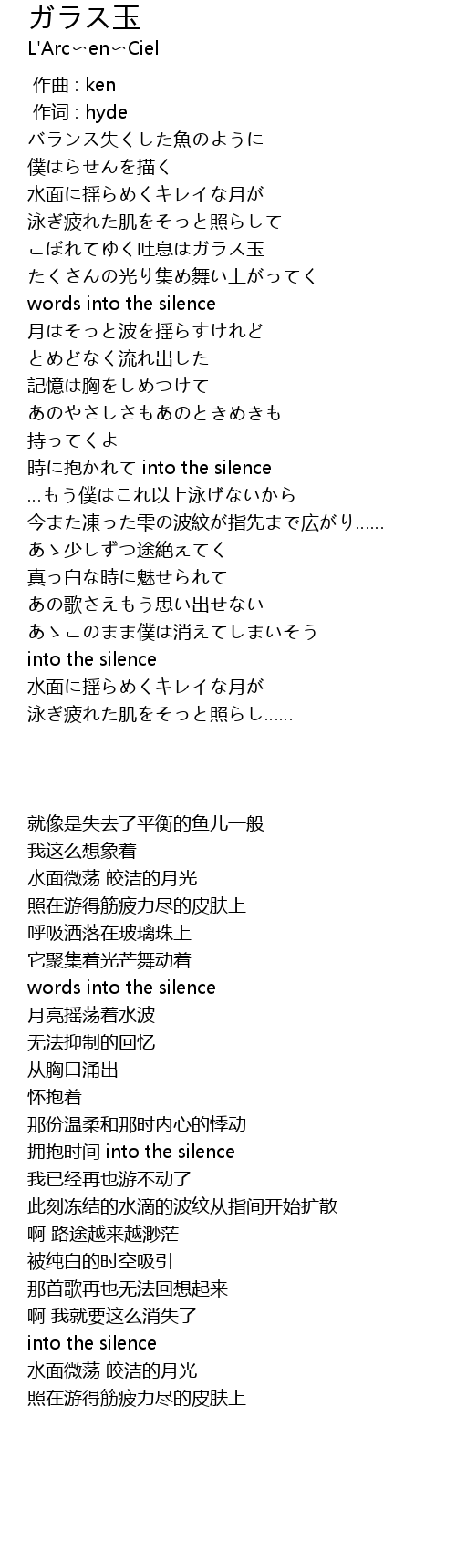 | [02:18.54] | 時に抱かれて into the silence |