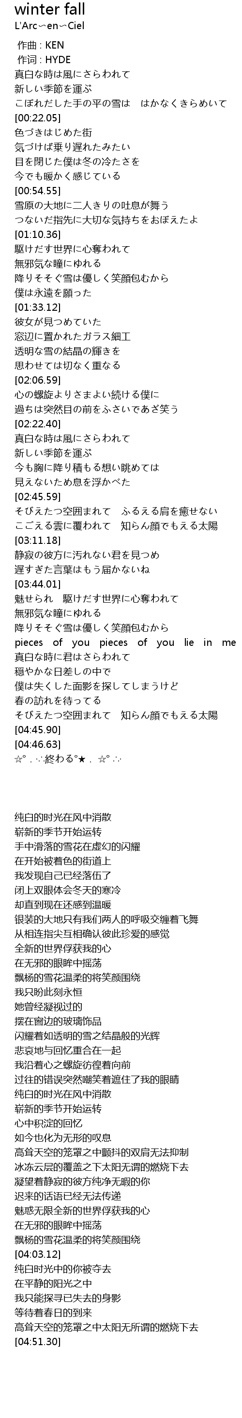 | [00:55.97] | 雪原の大地に二人きりの吐息が舞う |