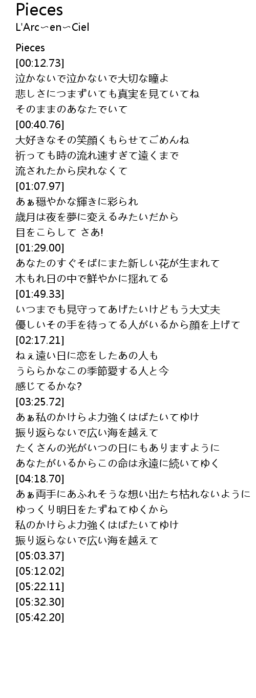 | [04:41.98] | 私のかけらよ力強くはばたいてゆけ |