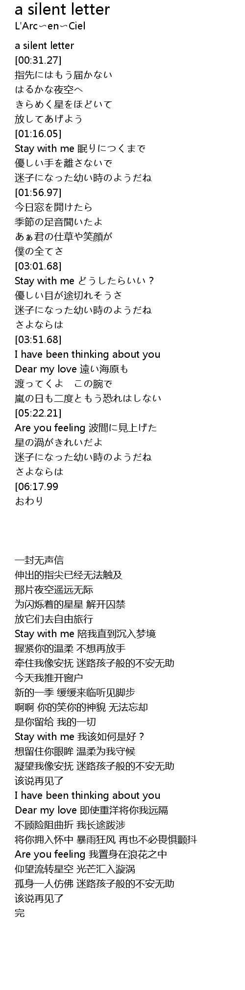 | [01:17.19] | Stay with me 眠りにつくまで |