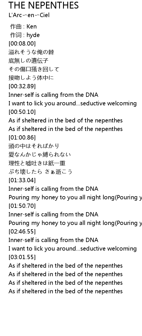 | [03:12.68] | As if sheltered in the bed of the nepenthes |