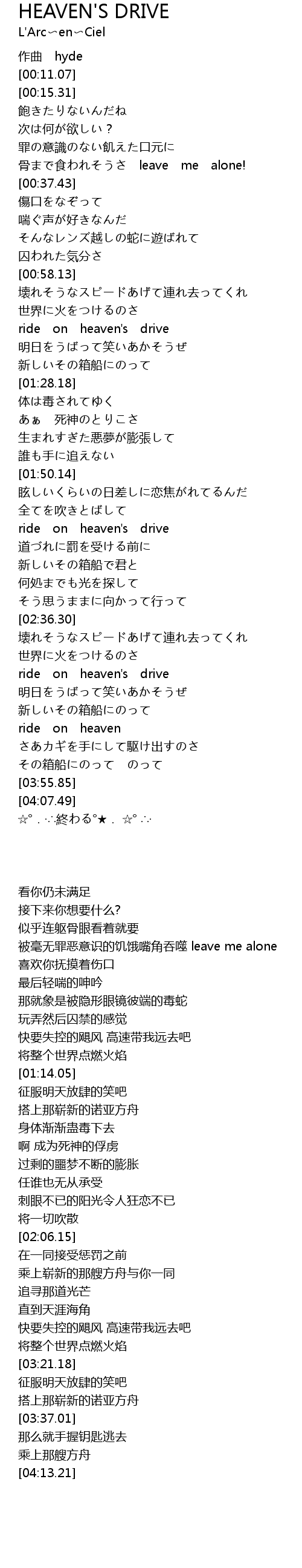 | [00:30.13] | 骨まで食われそうさ leave me alone! |