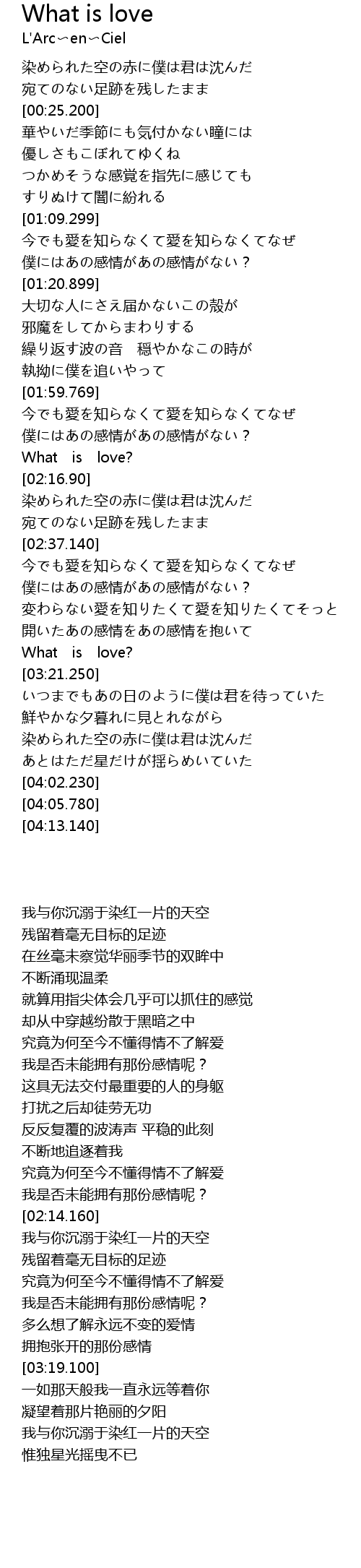 | [03:19.100] | What is love? |