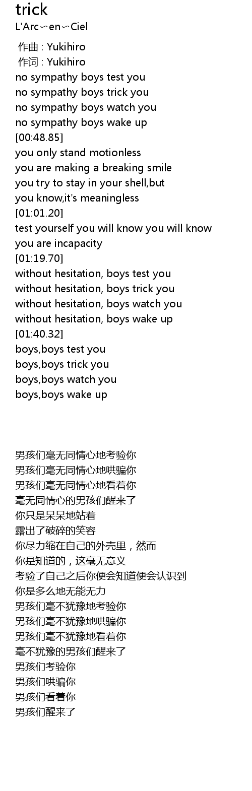 | [01:31.49] | without hesitation, boys trick you |