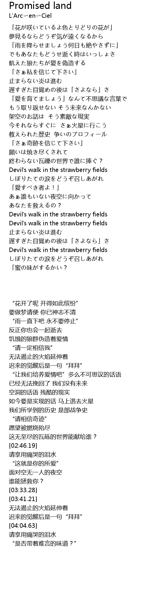 | [03:33.28] | Devil's walk in the strawberry fields |