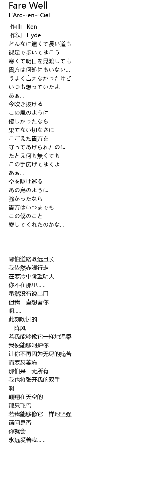 作词 : Hyde |