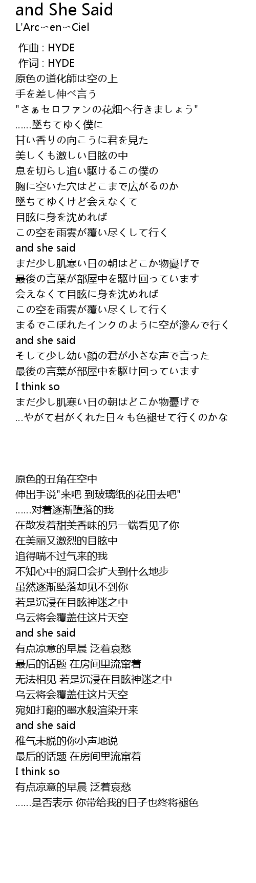 | [00:01.00] | zuò cí : HYDE |