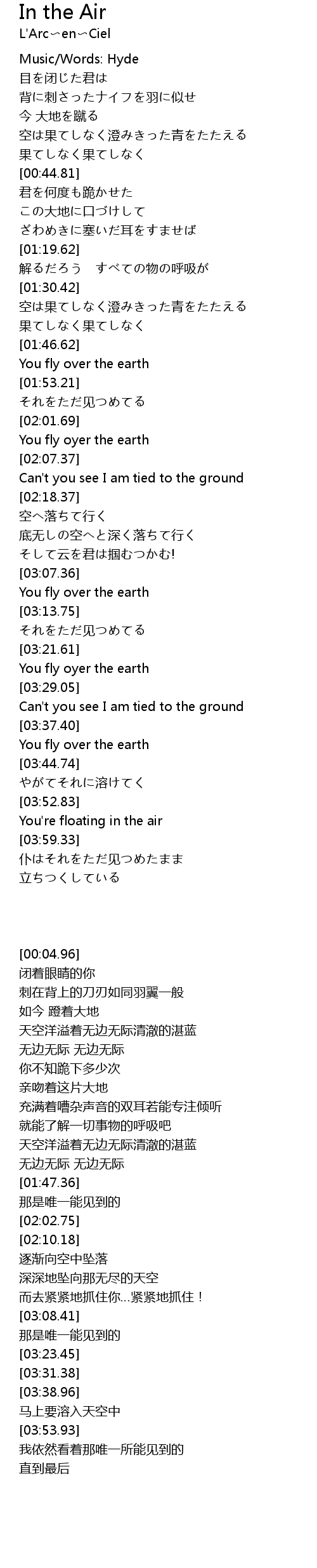 | [03:23.45] | You fly oyer the earth |