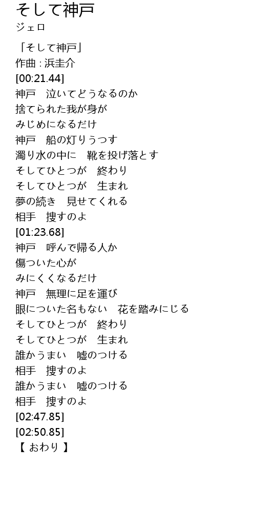| [00:23.44] | 神戸 泣いてどうなるのか |