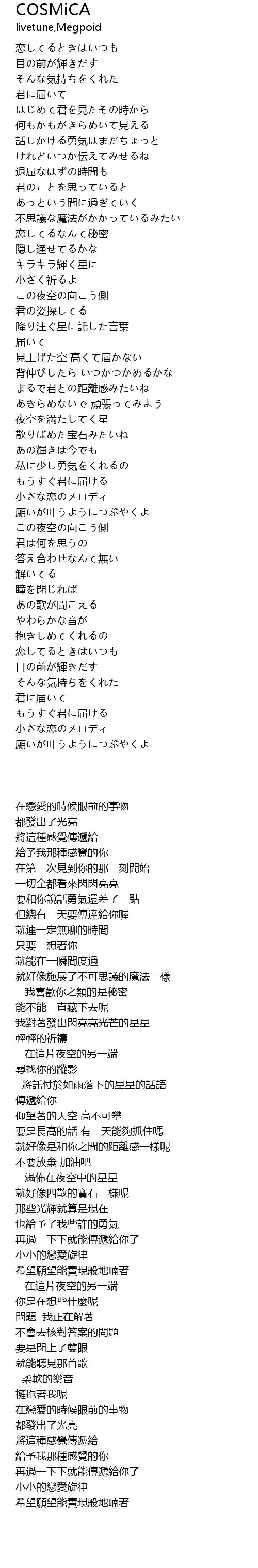 | [01:49.16] | 降り注ぐ星に託した言葉 |