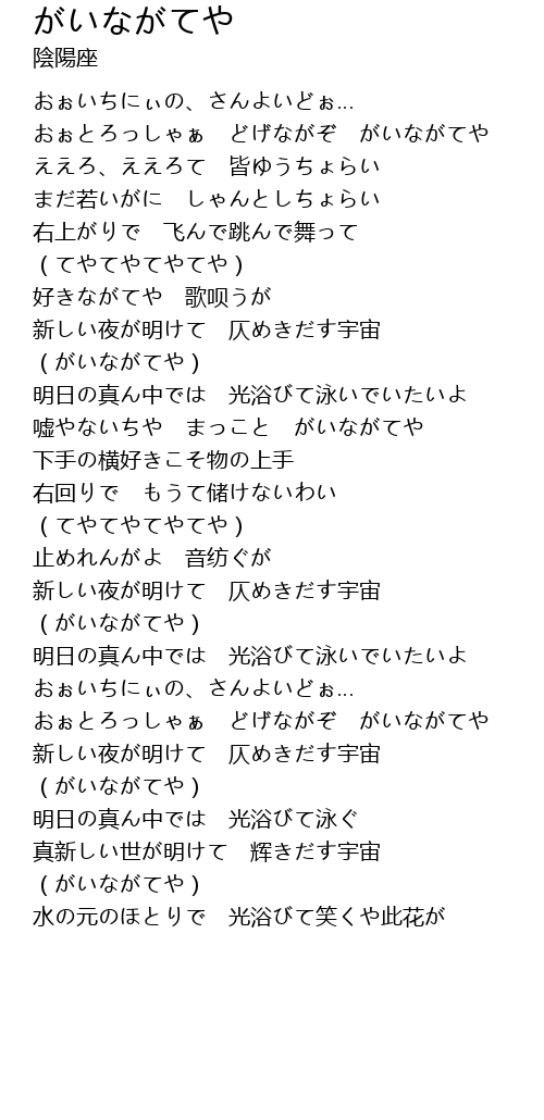 | おぉとろっしゃぁ どげながぞ がいながてや | |