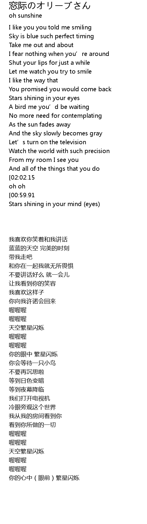 | [02:06.16][00:59.91] | Stars shining in the sky |