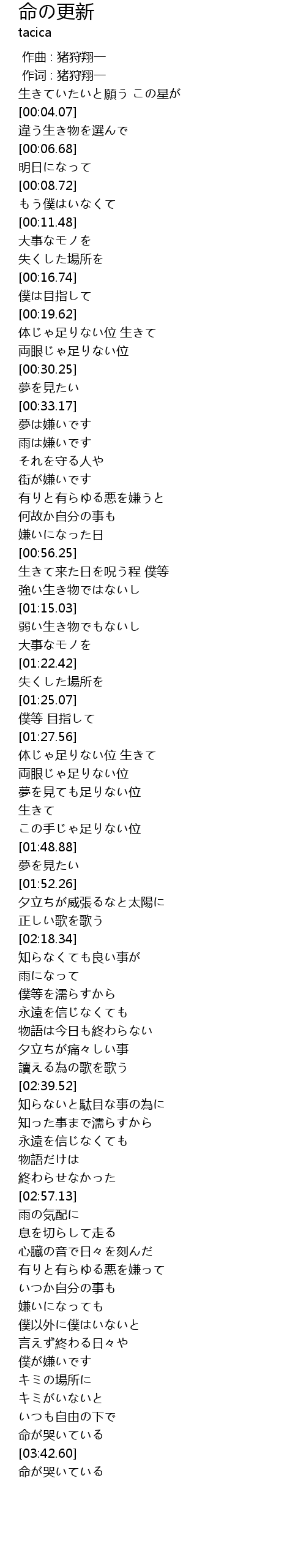 | [03:04.99] | 心臓の音で日々を刻んだ |