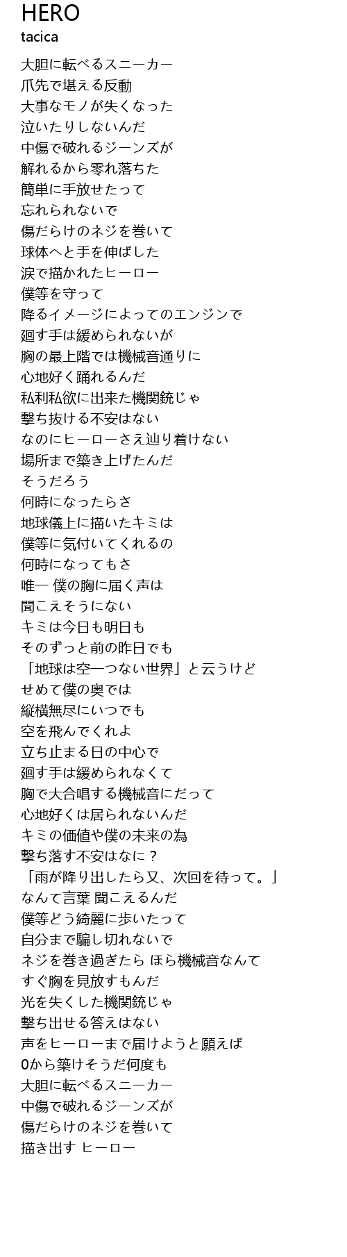 | [01:26.51] | なのにヒーローさえ辿り着けない |