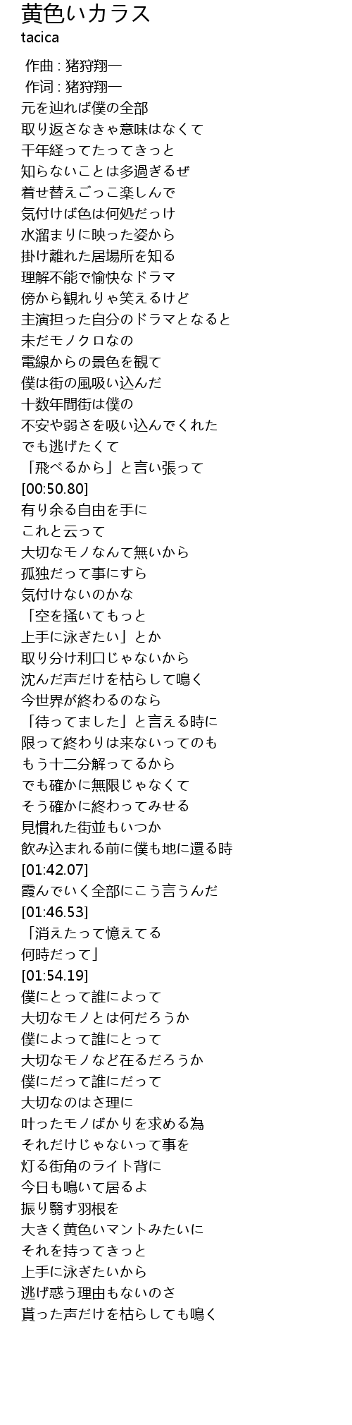 | [02:43.22] | 大きく黄色いマントみたいに |