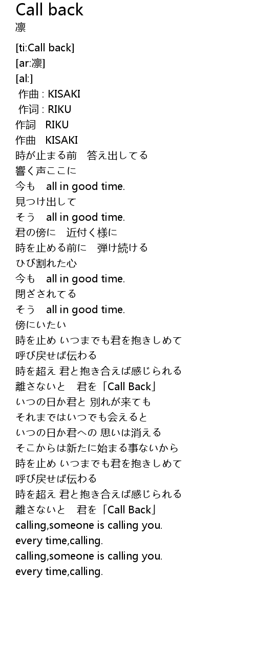 | [02:04.36] | 離さないと 君を「Call Back」 |