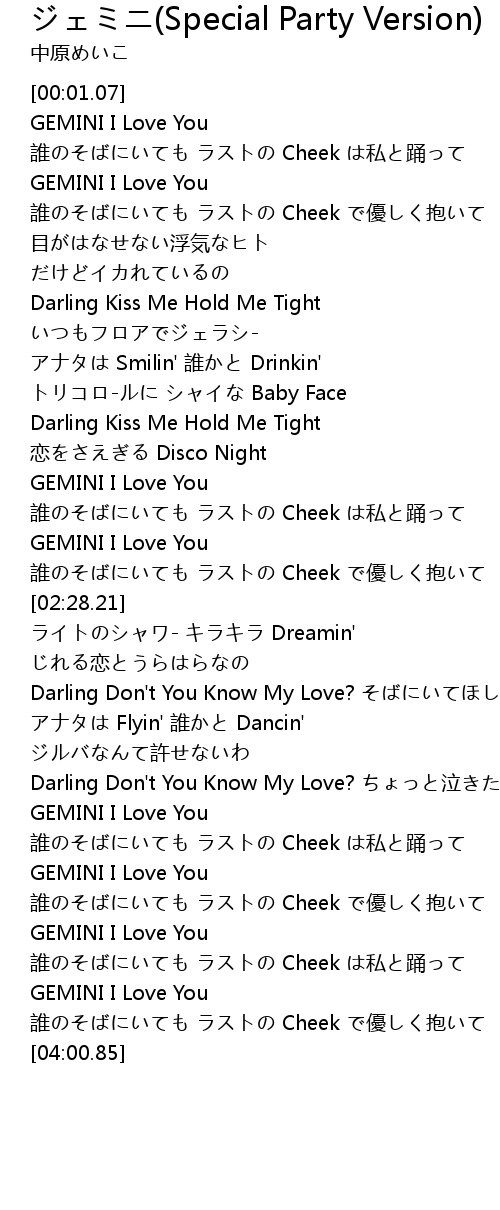 | [03:37.87] | 誰のそばにいても ラストの Cheek は私と踊って |