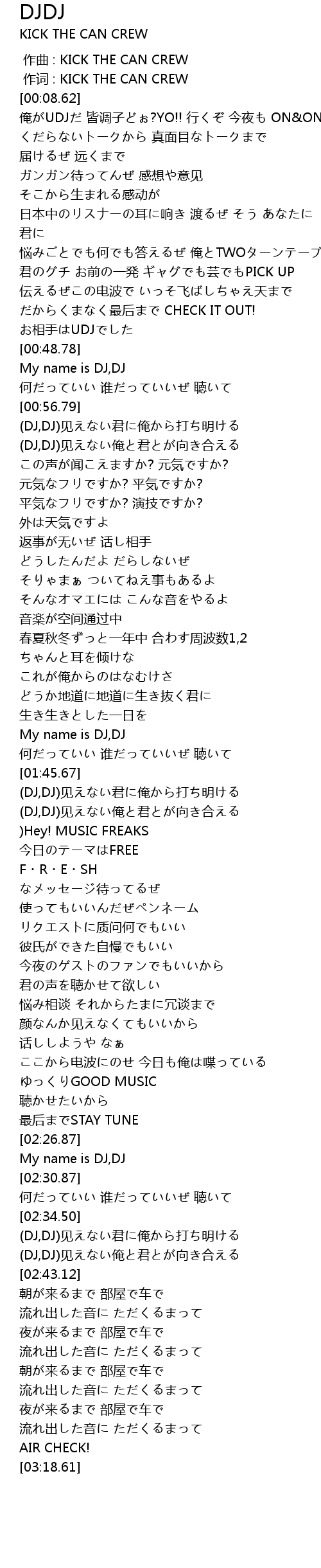 | [00:00.00] | 作曲 : KICK THE CAN CREW |