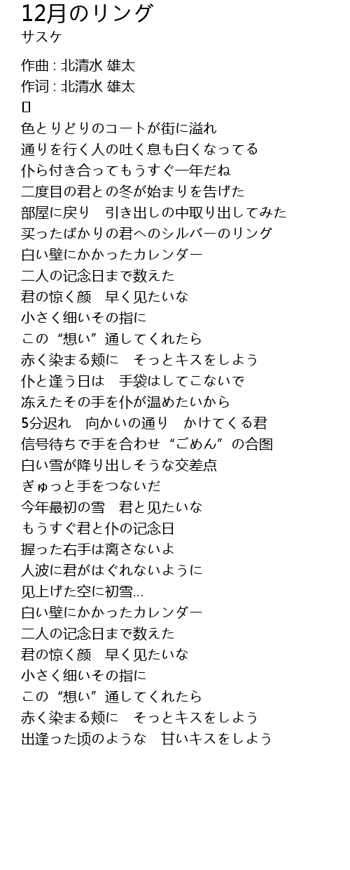 | 作词 : 北清水 雄太 | |