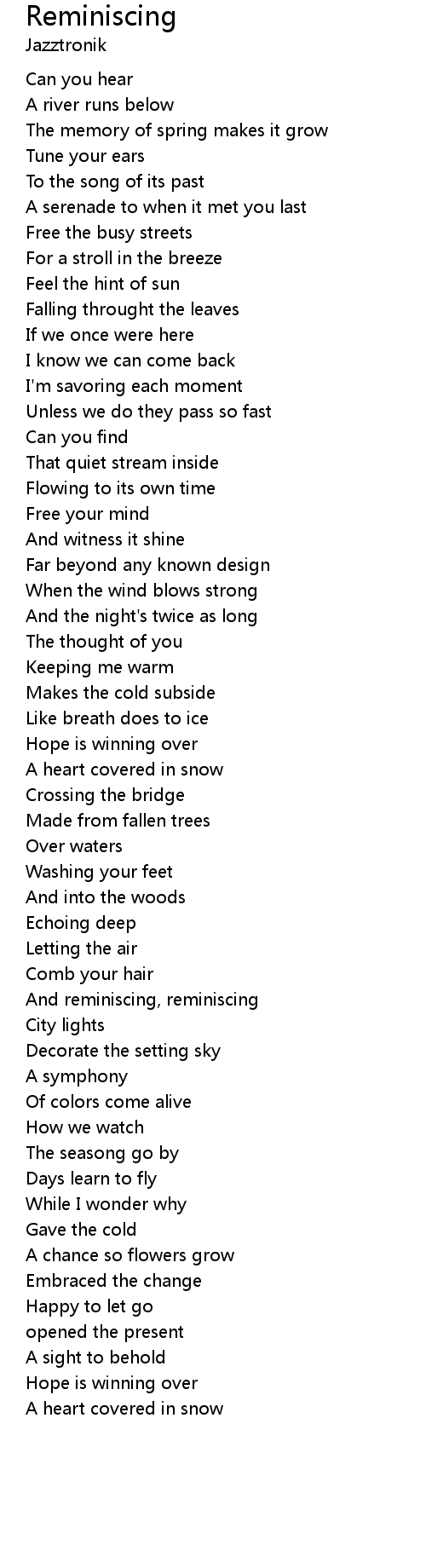And reminiscing, reminiscing |