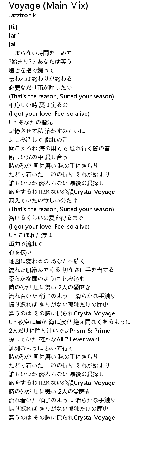 | [04:58.76] | 旅をするわ 眠れない余韻Crystal Voyage |