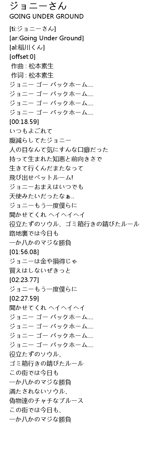 | [00:01.82] | ジョニー ゴー バックホーム‥‥ |