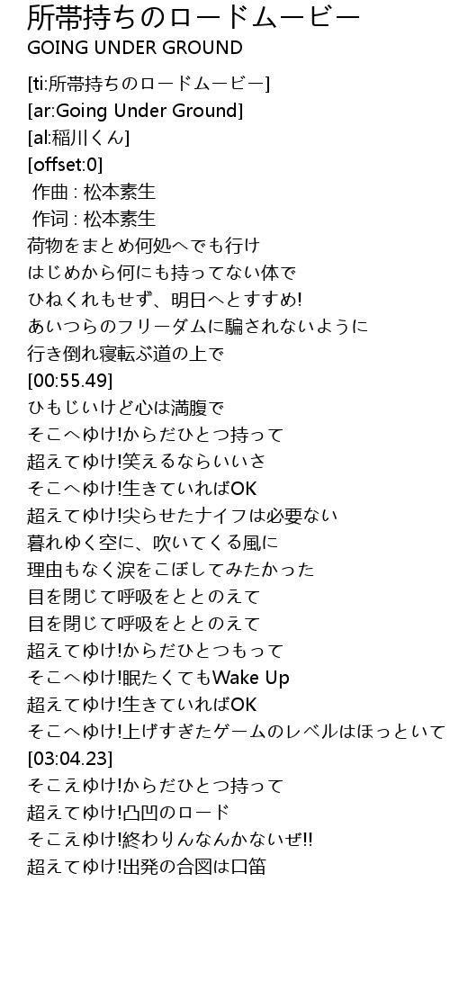 | [01:03.54] | そこへゆけ!からだひとつ持って |