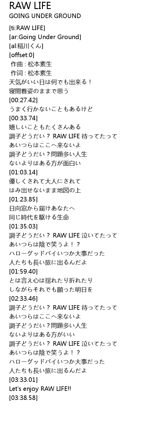 | [02:46.55] | 調子どうだい? RAW LIFE 待ってたって |