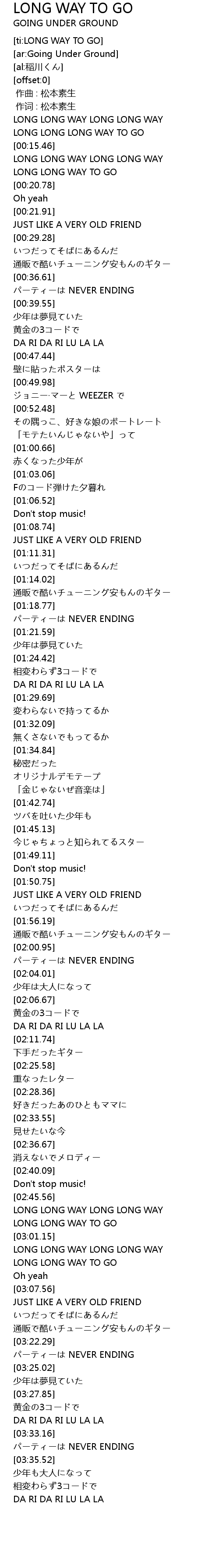 | [00:13.49] | LONG LONG LONG WAY TO GO |