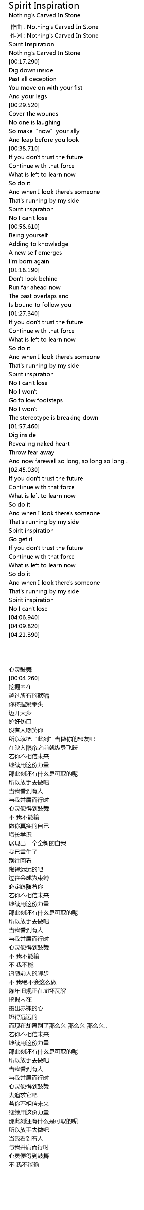 | [00:00.180] | zuò cí : Nothing' s Carved In Stone |