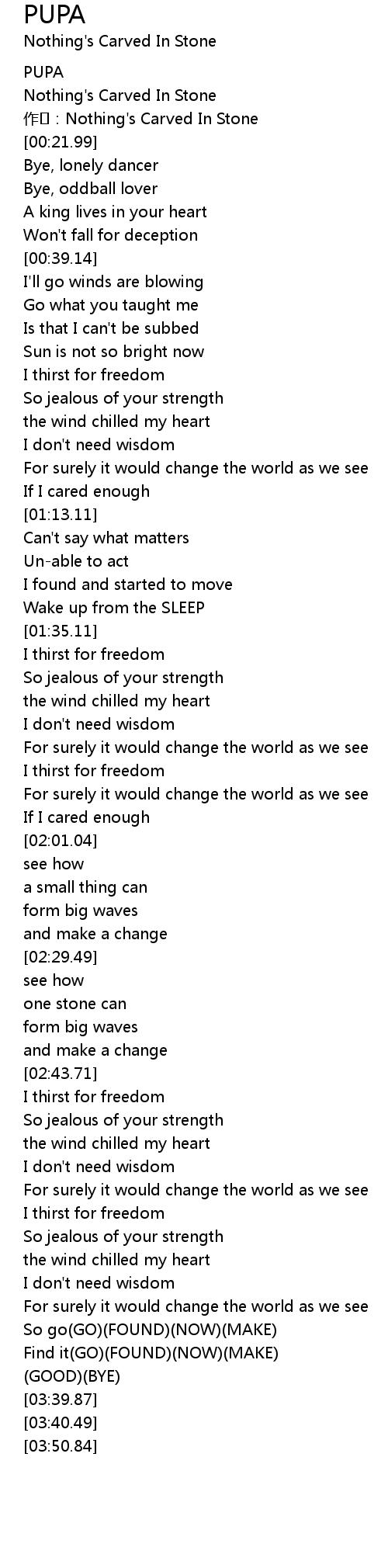 | [00:11.42] | zuò: Nothing' s Carved In Stone |
