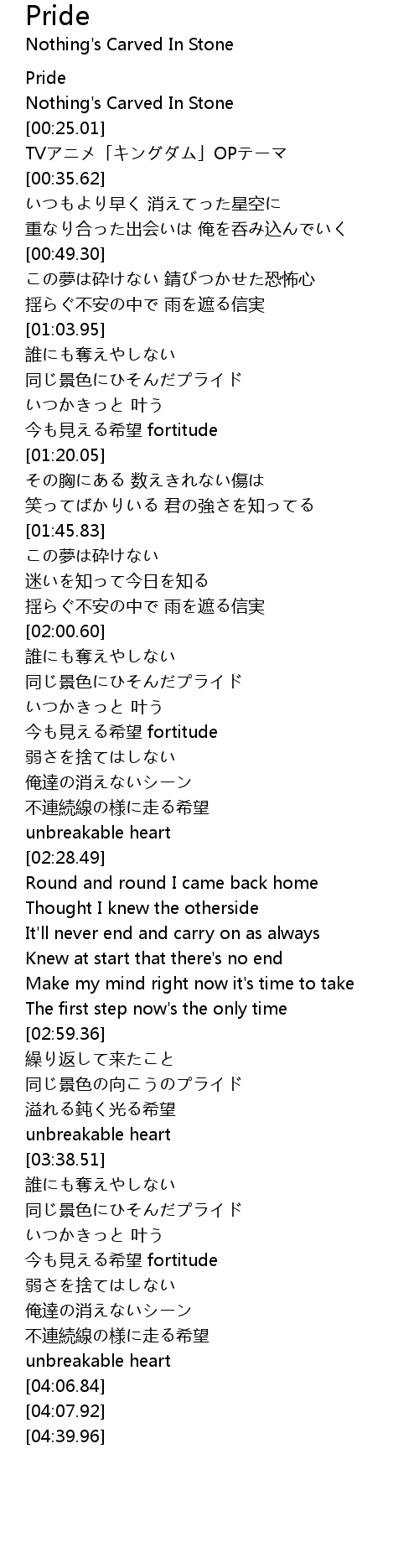 | [00:26.34] | TVアニメ「キングダム」OPテーマ |