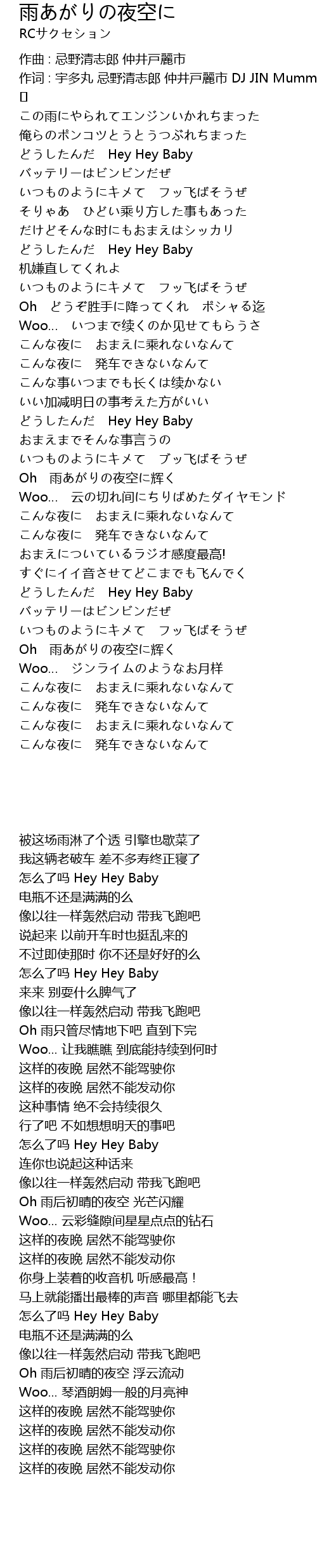 | 作词 : 宇多丸 忌野清志郎 仲井戸麗市 DJ JIN Mummy-D | |