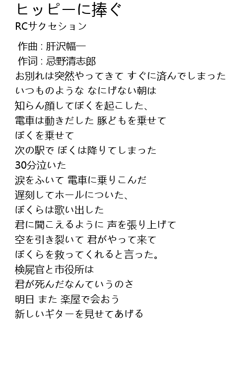 | [00:01.00] | 作词 : 忌野清志郎 |