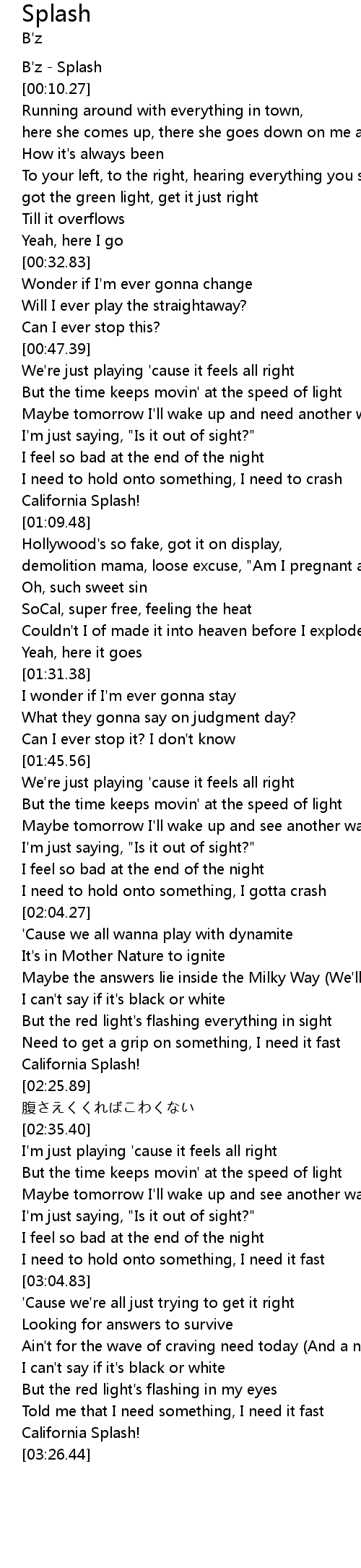 | [03:23.98] | California Splash! |