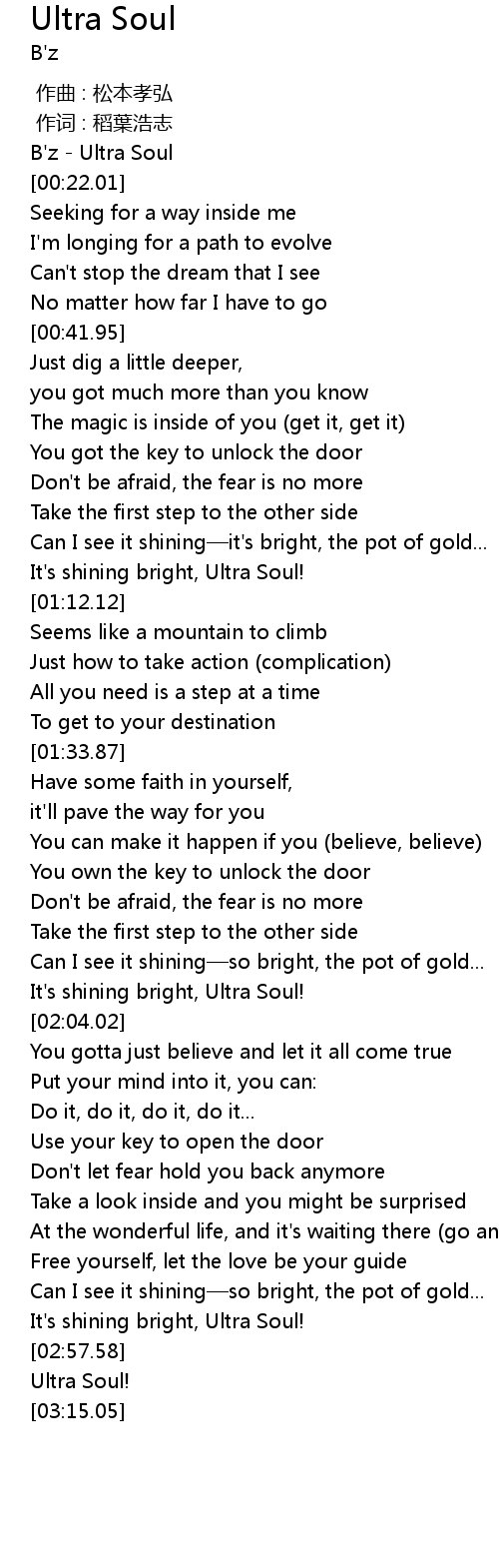 | [01:08.09] | It' s shining bright, Ultra Soul! |