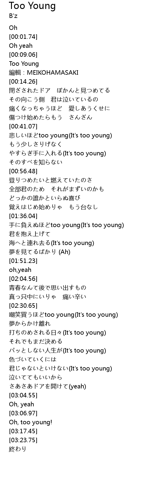 | [02:31.70] | 嘲笑買うほどtoo young(It's too young) |