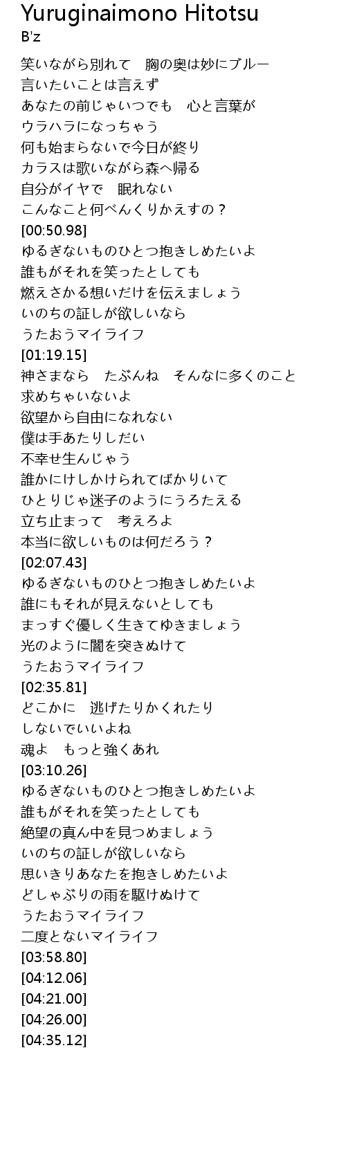 Yuruginaimono Hitotsu Lyrics