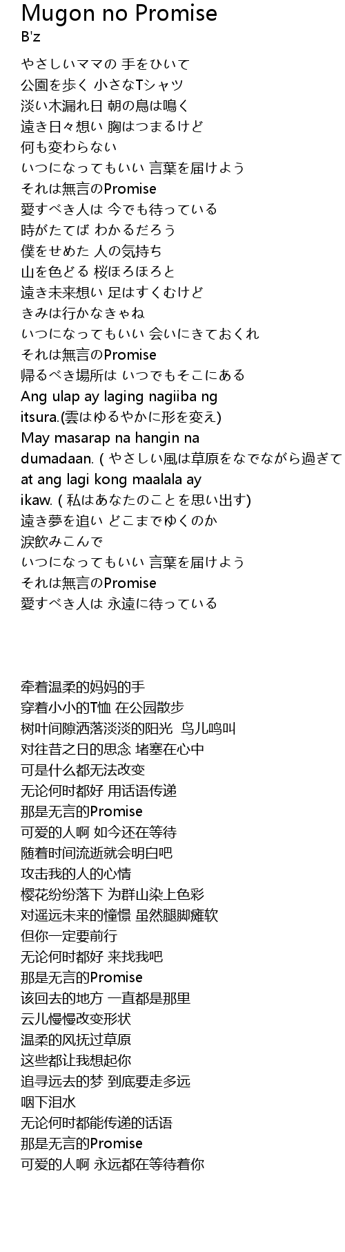 | [02:58.28] | at ang lagi kong maalala ay ikaw.(私はあなたのことを思い出す) |