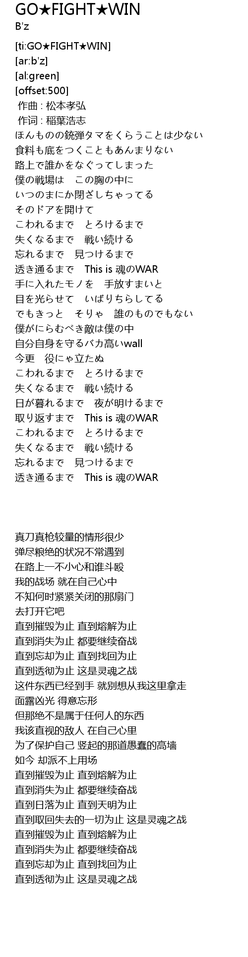 | [00:01.00] | 作词 : 稲葉浩志 |
